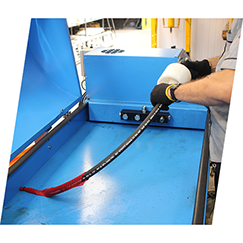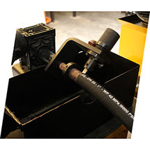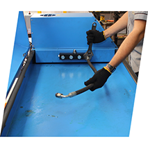 A CENTRAL DAS MANGUEIRAS possui o equipamento especifico de corte que proporciona um corte rápido, limpo e seguro, sem danificar as tramas de aço e sua proteção de borracha externa e interna.